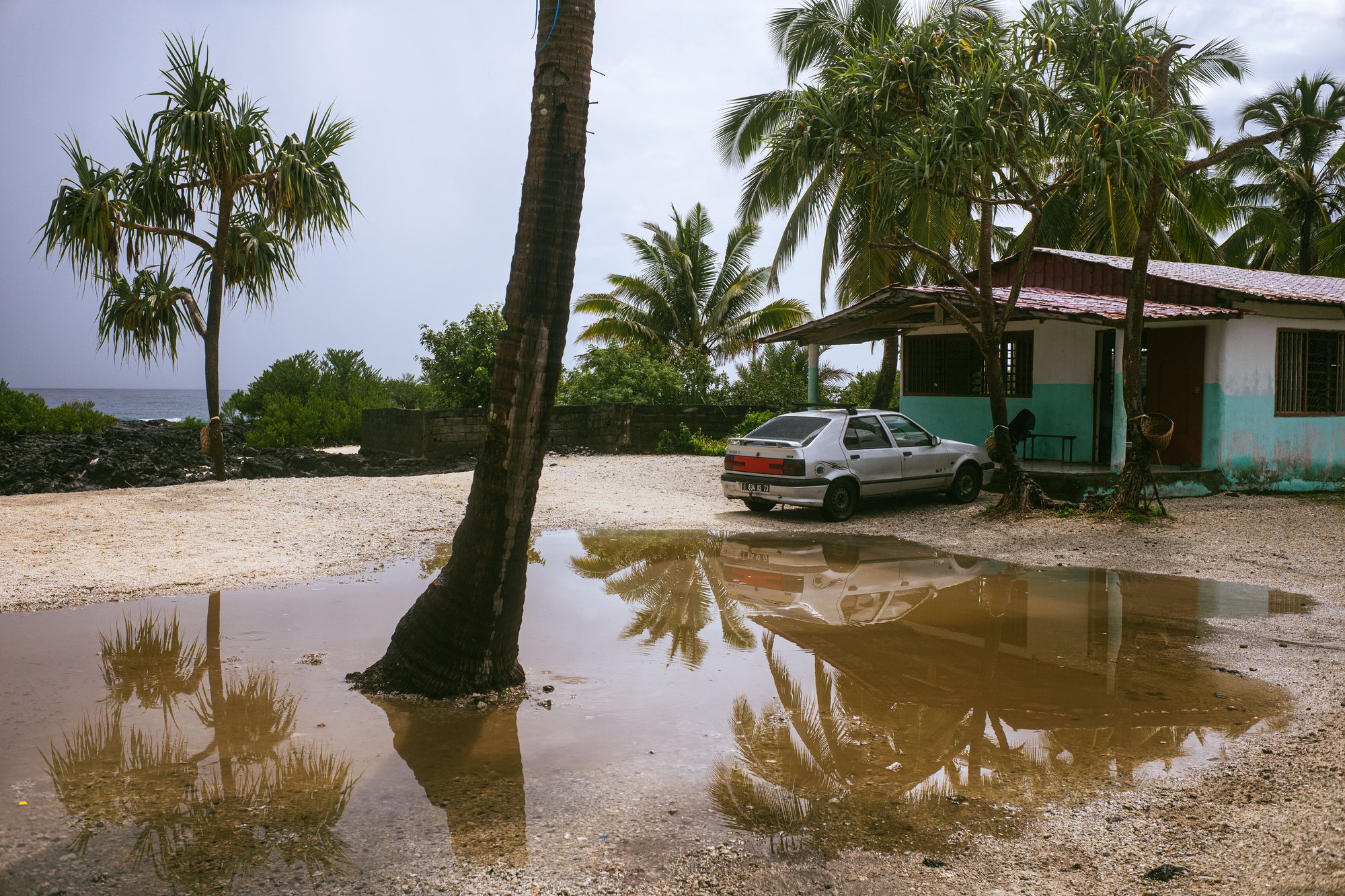 A Ngazidja, une vieille Renault et quelques reflets, après le passage de la pluie.